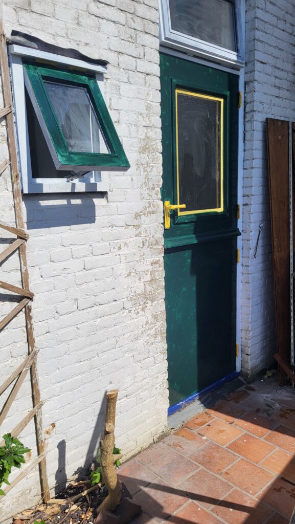 Daarnaast in het heerlijke zonnetje lekker buiten aan de gang gegaan. De blauwe keukendeur is nu monumentengroen. Eens kijken of dat bevalt, als uitprobeersel, voordat ik de kunststof kozijnen definitief in die kleur ga bestellen. Ik denk dat ik het wel mooi vind.