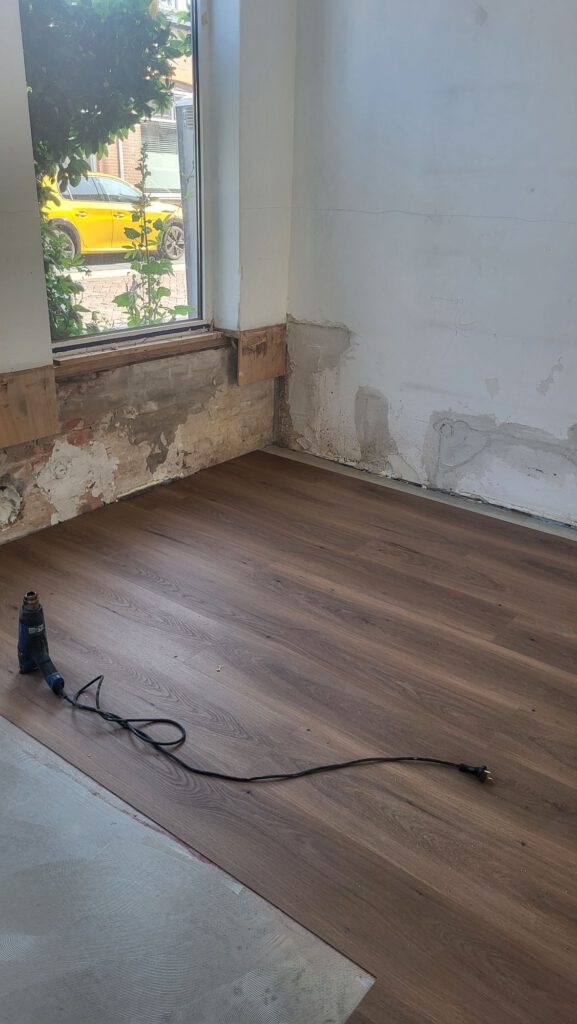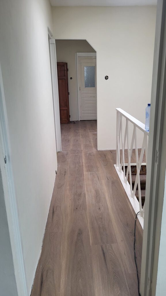 Dat was even schakelen. We versnellen de planning gewoon even. Waar de vloerenlegger deze week de bovenverdieping zou leggen, en met Pinksteren beneden, ligt de vloer nu al bijna overal. En wat een verschil, het is ineens een echt, bewoonbaar huis (nou ja, we vergeten het gebrek aan douche en de afwezigheid van een keuken even). Heel blij met de vloerkleur, dat heb ik toch maar goed uitgekozen.