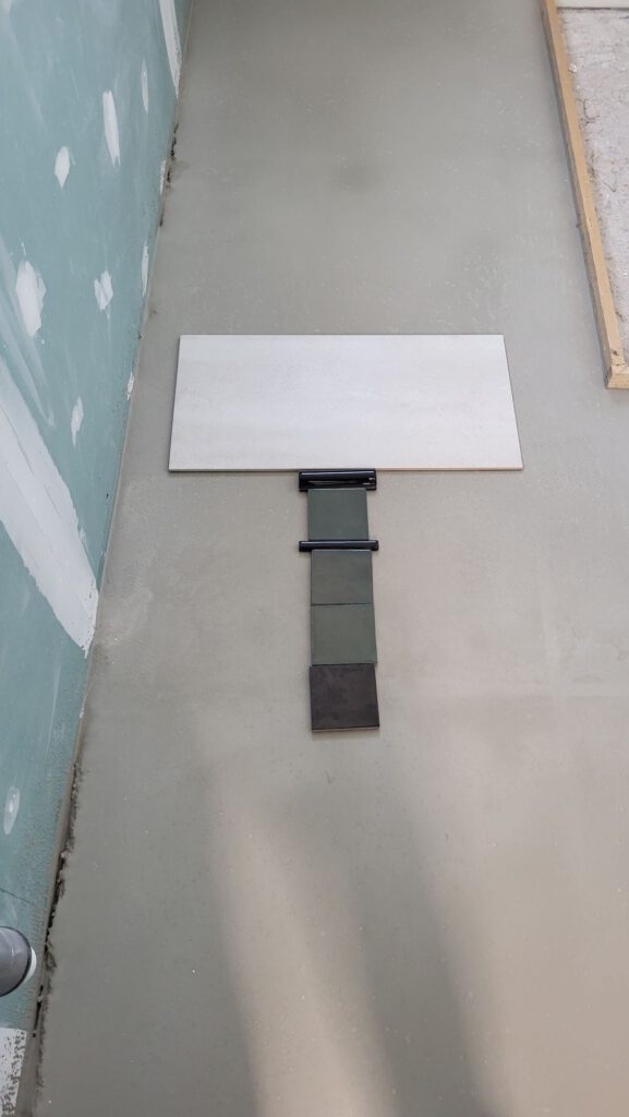 De meneer die de vloeren komt leggen is aan de deur geweest voor het inmeetbezoek en de tegels voor badkamer en toilet zijn volgens afspraak geleverd. Kan niet wachten tot ze daadwerkelijk op de muur zitten!