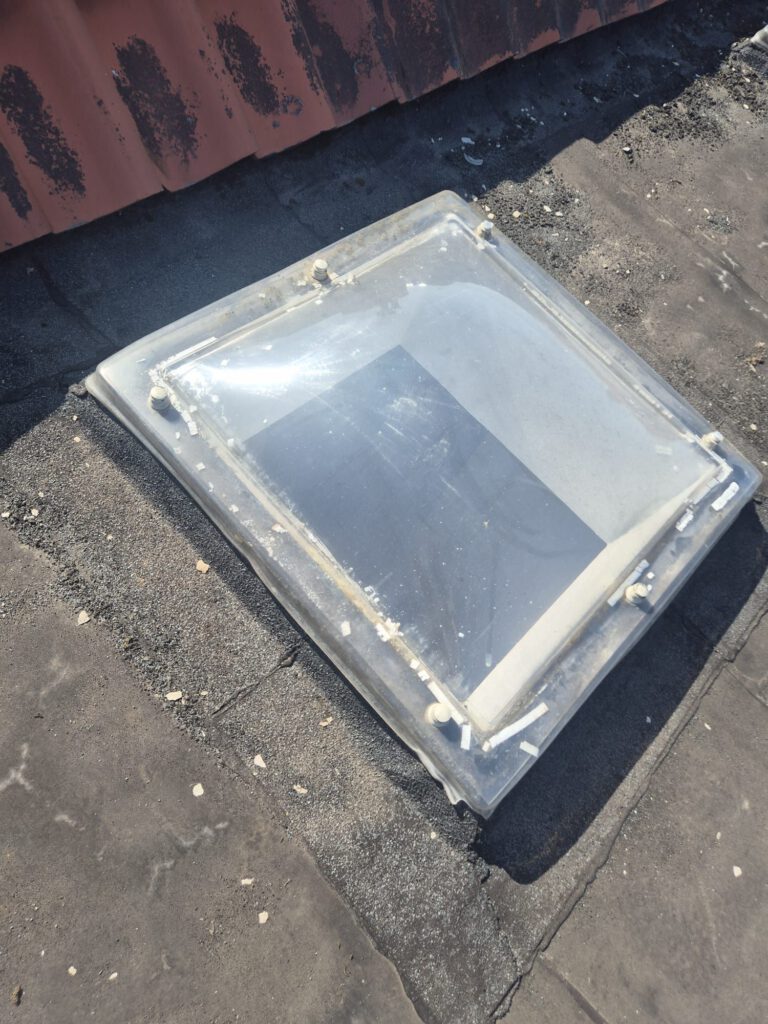 M’n broer is ook nog even op het dak geklommen om te kijken naar de lichtkoepel die lekt na een regenbui, en wat levert dat leuke plaatjes op!