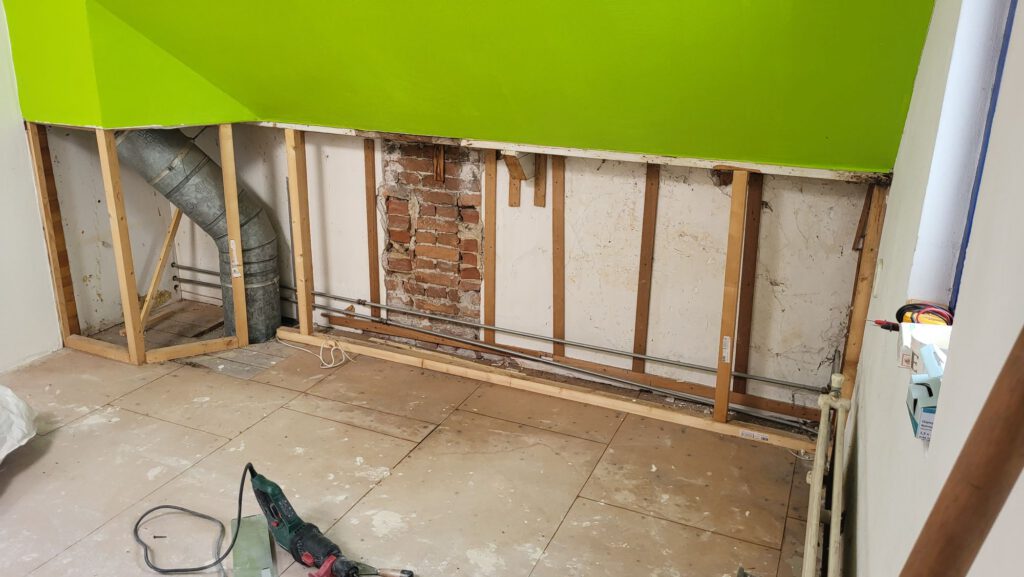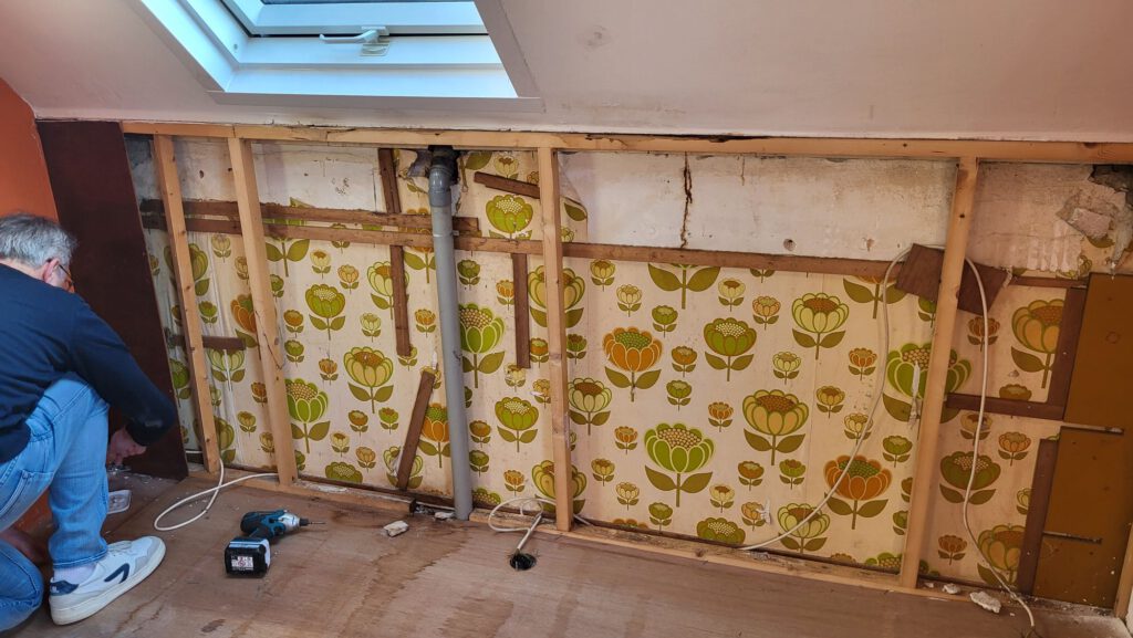 De eerste verbouwweek is voorbij gevlogen. Met een eerste dankbare shoutout naar m’n vader, die maar liefst 3 weken heeft vrij genomen om m’n houtje-touwtje huis op te knappen. Want houtje-touwtje, dat is het wel. Mijn blauwe huis is ruim 100 jaar oud en de sporen uit het verleden komen we tegen. Elektra verstopt achter voorzetwanden waarbij we er al snel achter komen dat het een wonder mag heten dat dit huisje nog niet is afgefikt. Gelukkig repareert m’n oudste broer al die gebreken, zodat we de komende jaren lekker veilig aan de Vondel kunnen wonen. Deze week heeft ook mijn jongste broer een week vrijgenomen om te helpen, en wat ben ik daar blij mee! Verder hele fijne hulp van een klein gezelschap andere familieleden en we zijn al een heel eind. Eindstand week 1: de badkamer is eruit, het plaatwerk in de slaapkamers is weg en de eerste kozijnen zijn geschuurd en staan in de lak. Het verkeersbordenblauw en -rood is steeds minder terug te zien op de bovenverdieping en dat geeft best wel wat rust. Ook is de aannemer langs geweest en hebben we afgesproken dat we flink aan de slag gaan: de komende weken gaat beneden de hele vloer eruit, storten we schuimbeton, komt er een fijn vloerverwarmingsklimaat en daarna kunnen we wonen. En het was hard nodig dat we de kruipruimte gaan aanpakken: veel optrekkend vocht in de muren, een nagenoeg vergane onderslagbalk en een rotte vloerbalk. Hopelijk is de benedenverdieping straks heerlijk comfortabel en toekomstbestendig!